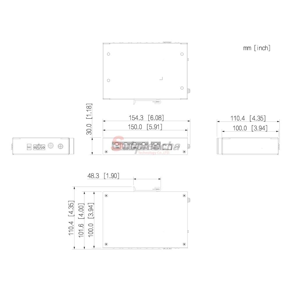 - 4 พอร์ต PoE (10/100 Mbps), 2 พอร์ต Uplink (10/100/1000 Mbps)