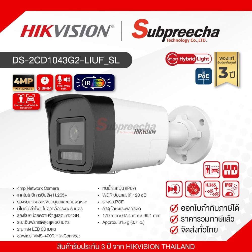 DS-2CD1043G2-LIUF/SL / Hikvision กล้องวงจรปิด 4 MP (Lens2.8mm) Smart Hybrid Light