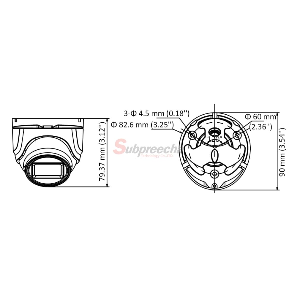 • ขนาด Ø 82.6 มม. × 90 มม. × 79.37 มม. (Ø 3.25″ × 3.54″ × 3.12″)
