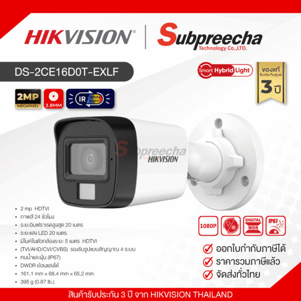 DS-2CE76D0T-LMFS / Hikvision กล้องวงจรปิด 2 MP (Lens2.8mm) Smart Hybrid Light