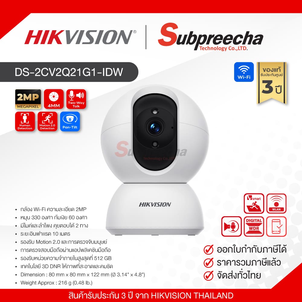 DS-2CV2Q21G1-IDW / Hikvision กล้องวงจรปิด 2 MP (Lens4.0mm) (Wi-Fi) Pan-Tilt Indoor Camera
