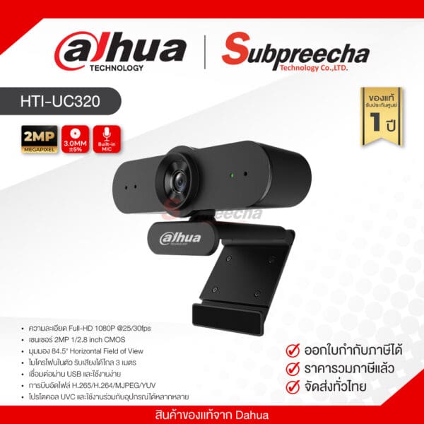 HTI-UC320 Dahua USB Webcam 2MP Full HD 1080P กล้องเว็บแคมพร้อมไมโครโฟนในตัว สำหรับประชุมออนไลน์