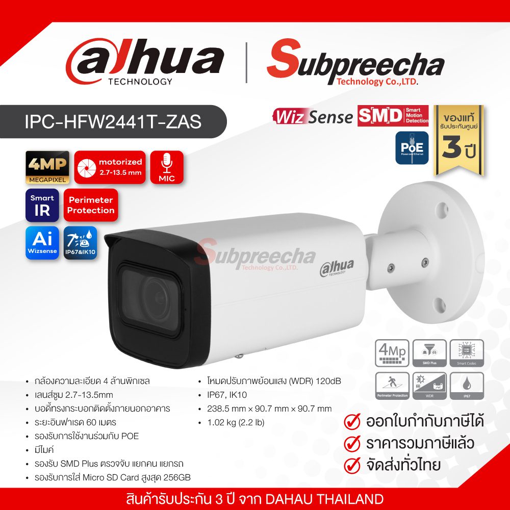 IPC-HFW2441T-ZAS / Dahua กล้องวงจรปิด 4 MP (Lens 2.7-13.5mm) (PoE) WizSense