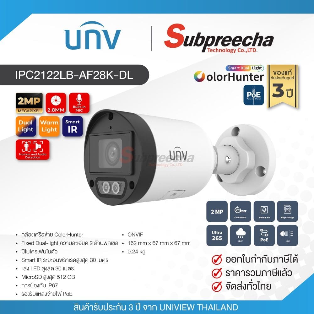 IPC2122LB-AF28K-DL / Uniview กล้องวงจรปิด 2 MP (Lens2.8mm) (PoE) ColorHunter
