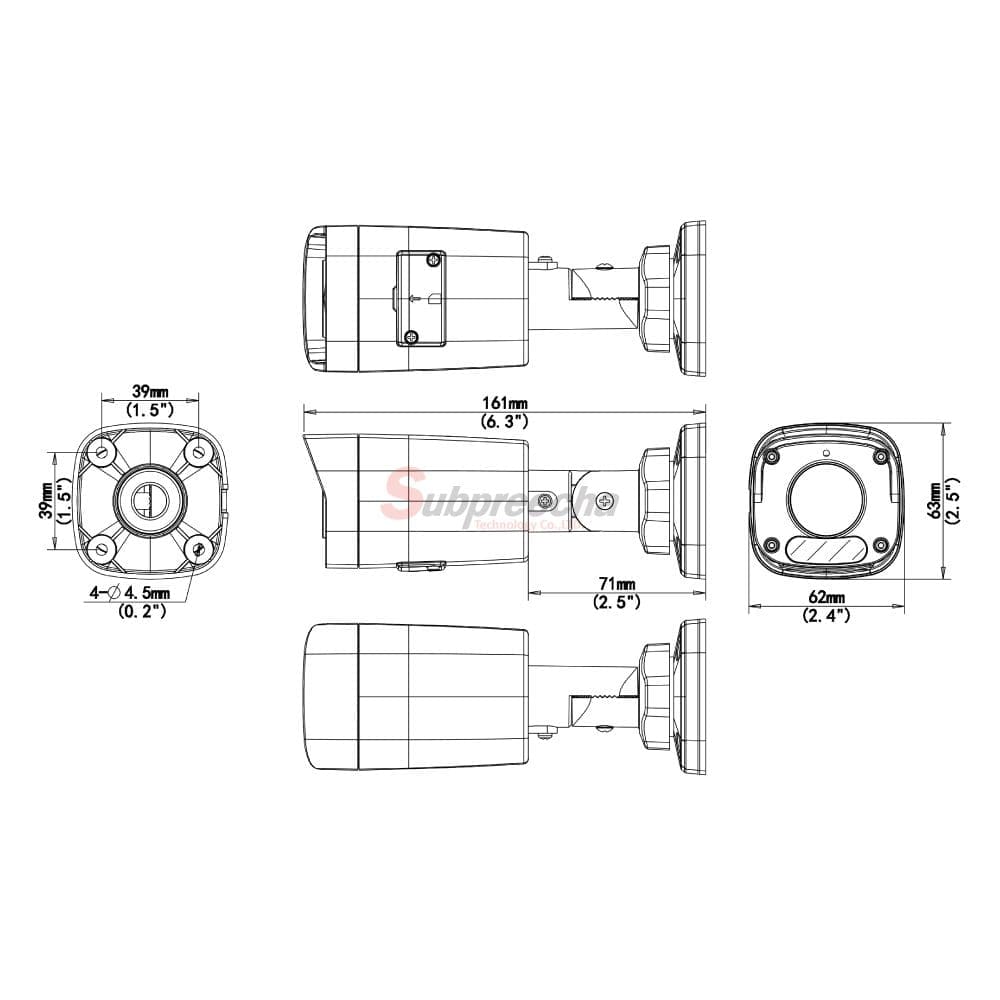 - 161 mm × 62 mm × 63 mm (6.3″ × 2.5″ × 2.5″) (L × W × H)