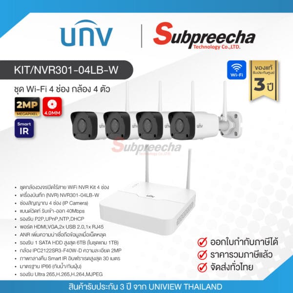 ◈ Uniview ชุดกล้องวงจรปิด Wi-Fi NVR KIT (NVR301-04LB-W + 4x กล้อง IPC2122SR3-F40W-D) พร้อมติดตั้งใช้งาน