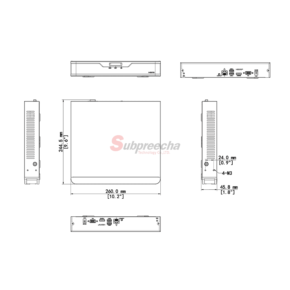 • 260mm × 240mm × 46mm (10.2″×9.4″×1.8″)