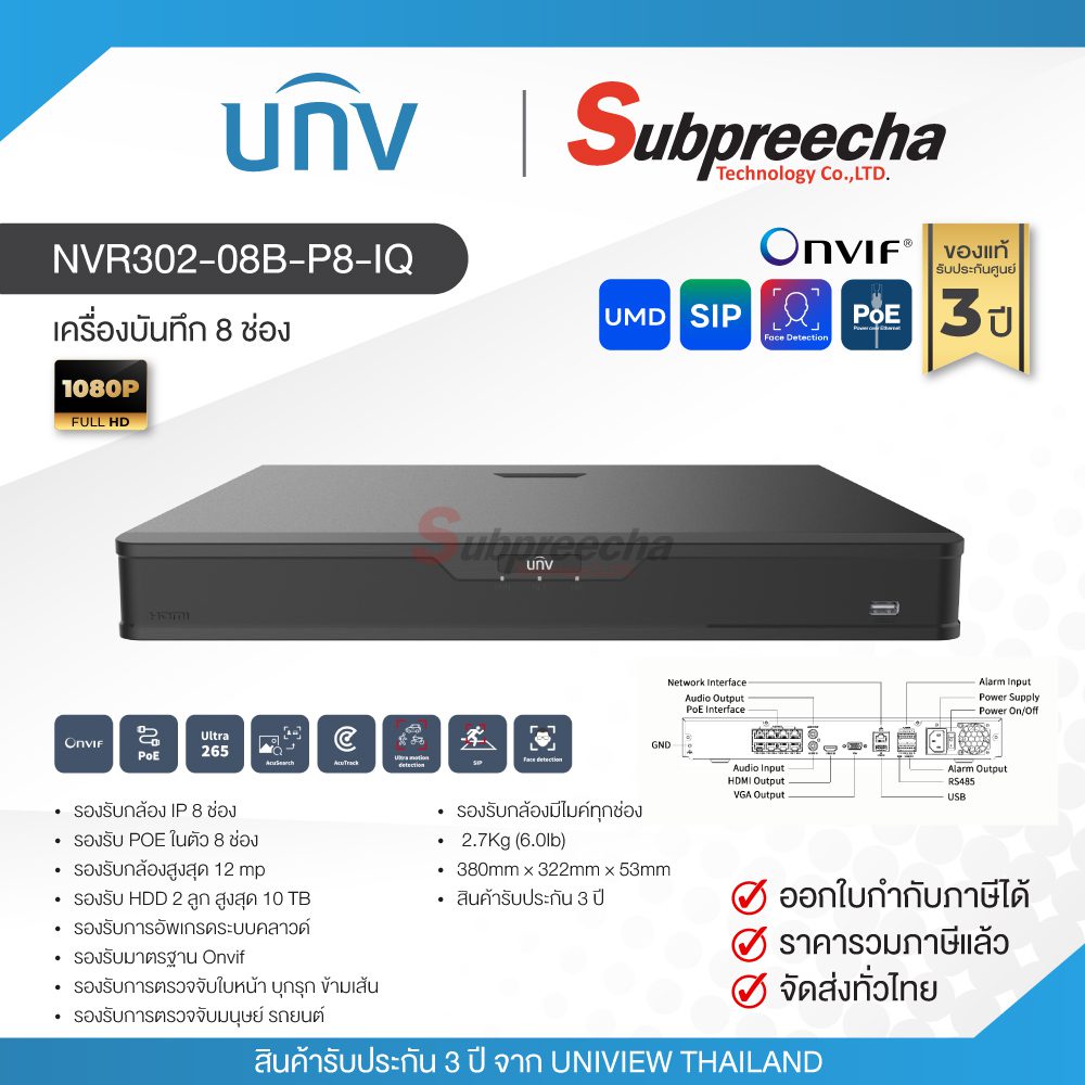 NVR302-08B-P8-IQ / Uniview เครื่องบันทึก NVR 4 ch (1 SATA) (4 PoE) (ICT)