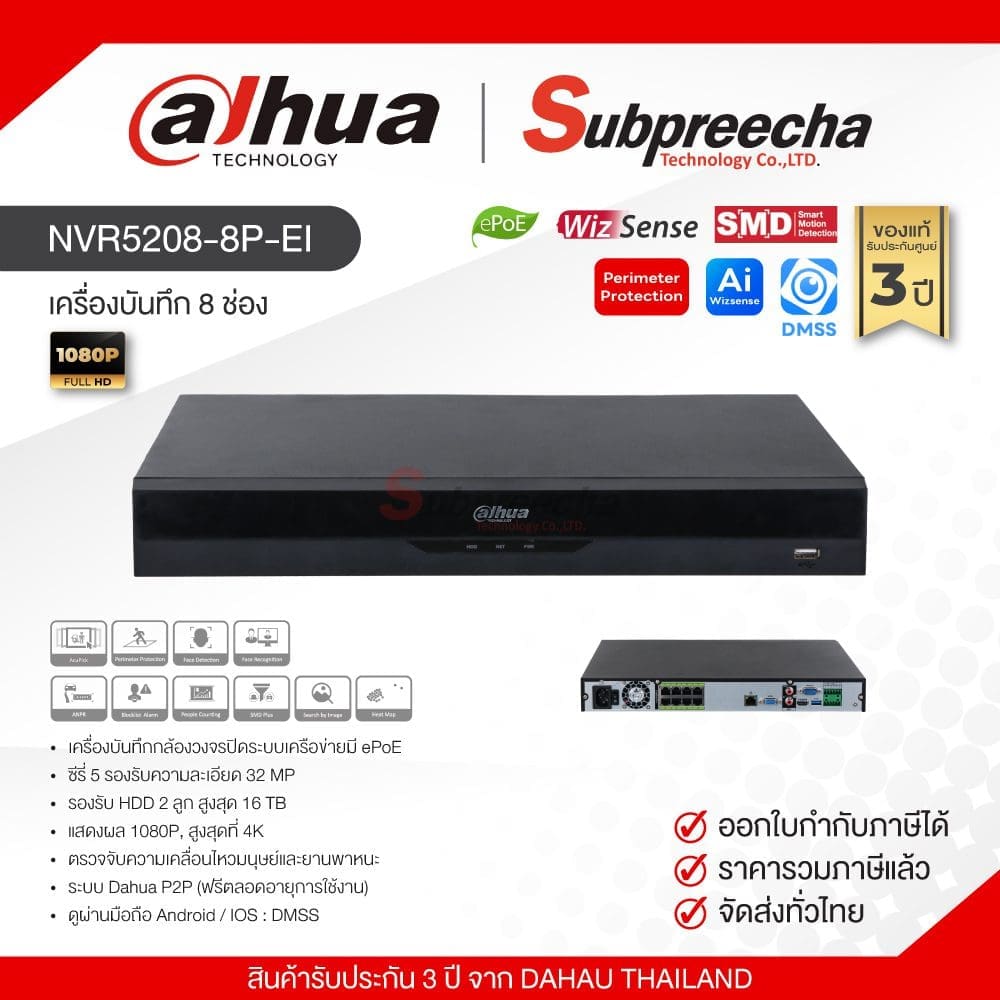 NVR5216-EI / Dahua เครื่องบันทึก NVR 16 ch (2 SATA) WizSense