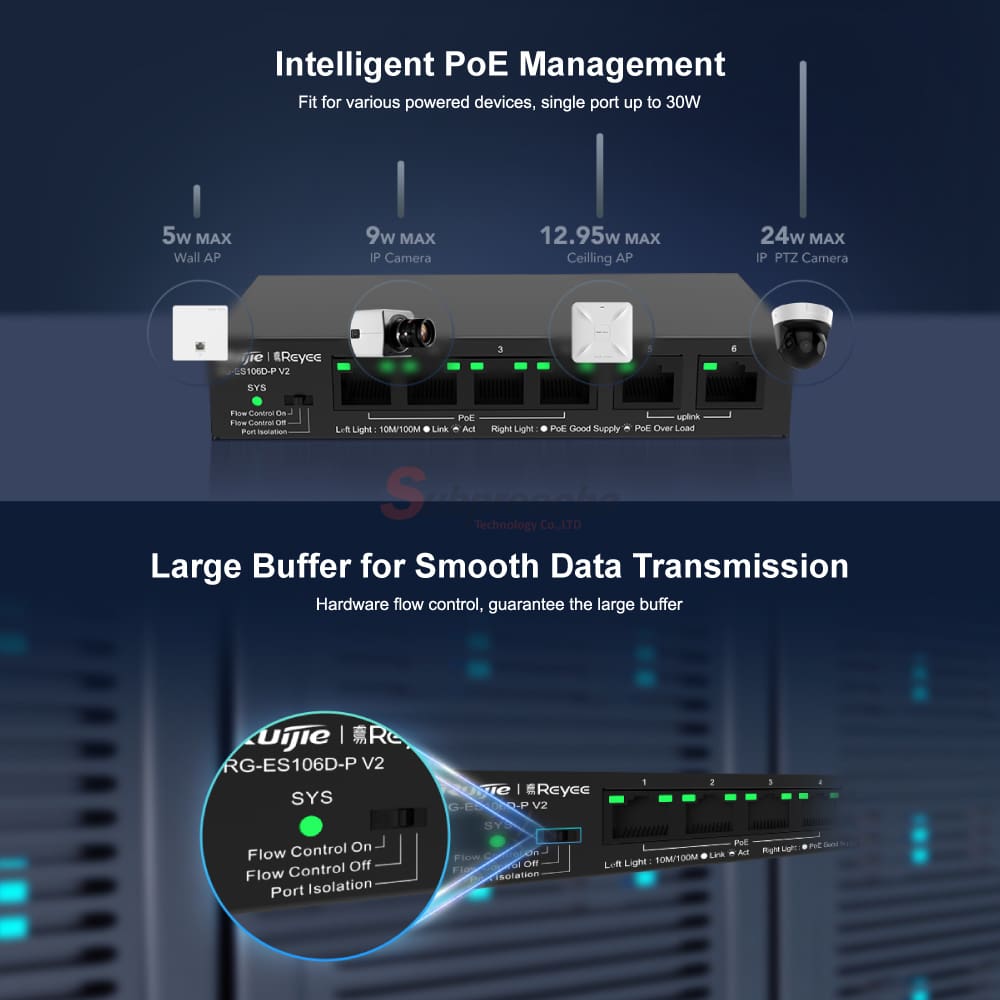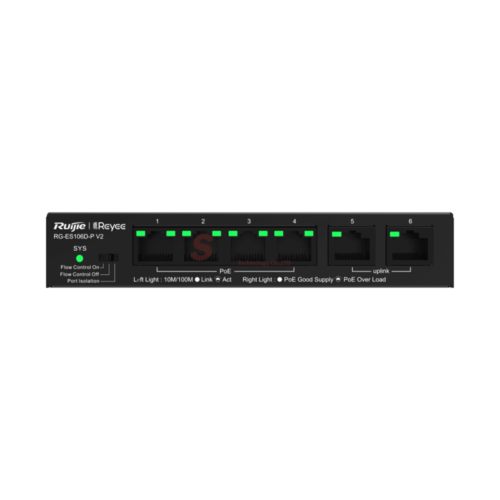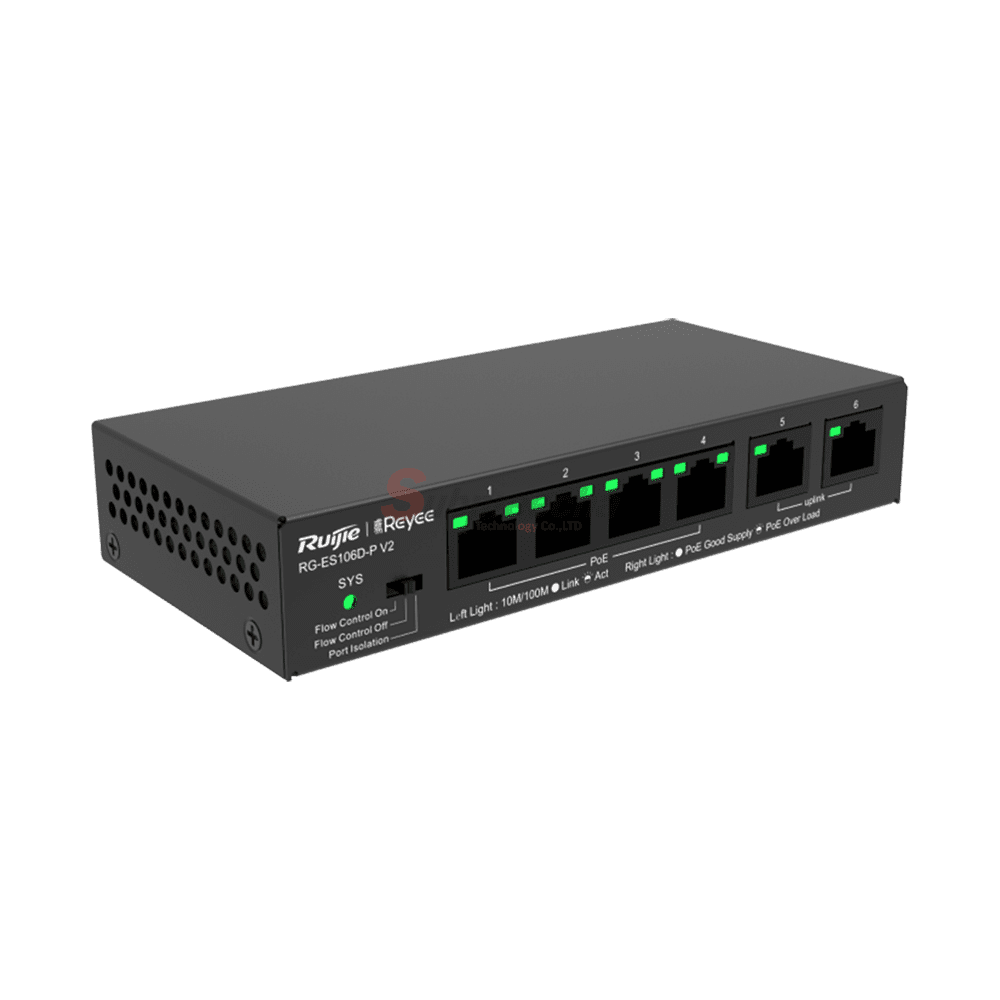 RG-ES106D-P / Ruijie-Reyee 6-Port 10/100 Mbps Desktop Unmanaged PoE Switch