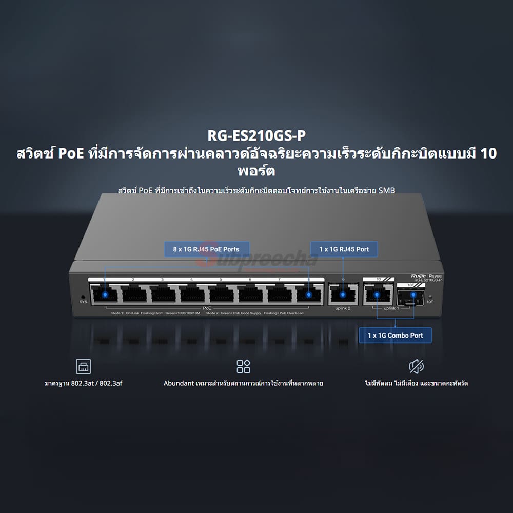 • การจัดการ Cloud Managed ผ่าน Ruijie Cloud, รองรับการตั้งค่า VLAN, ตรวจสอบสถิติ, และรีบูตอุปกรณ์ระยะไกล