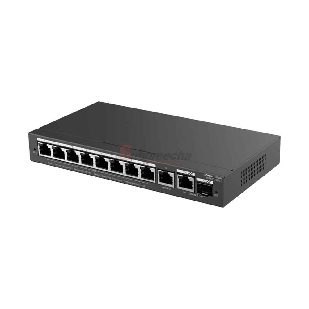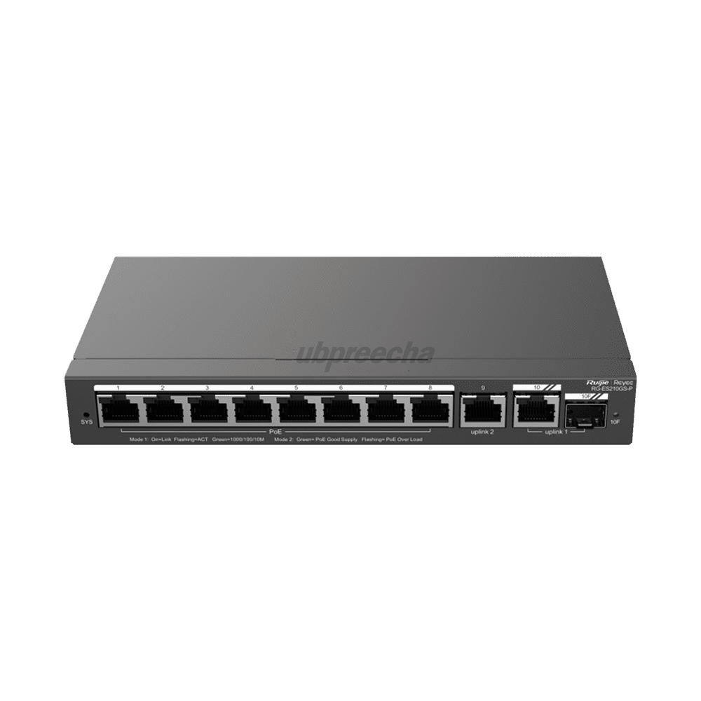 • 10 พอร์ต Gigabit (8 PoE+, 1 RJ45 Uplink, 1 SFP/Combo SFP Uplink)