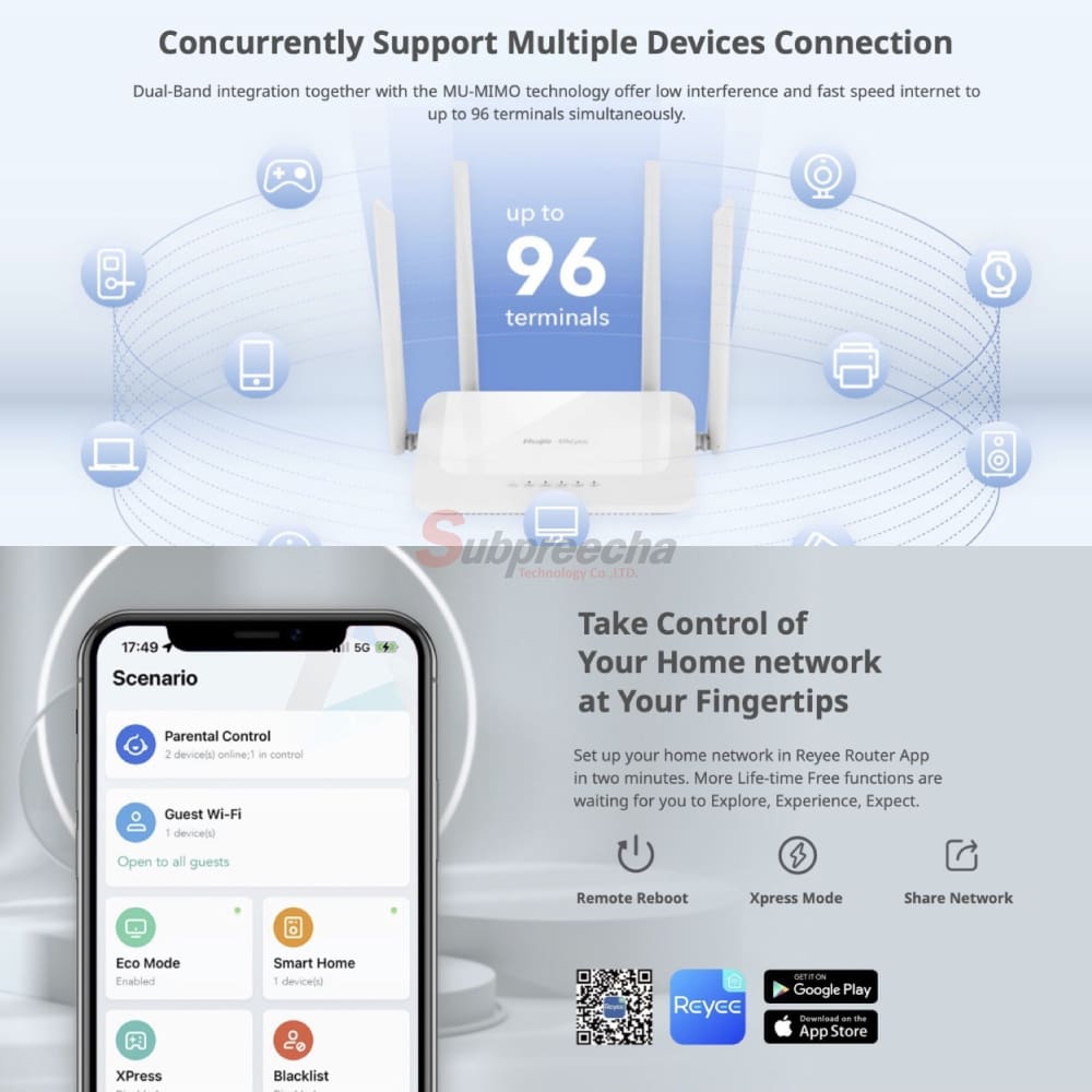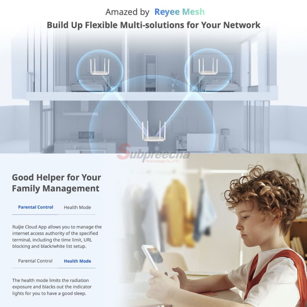 ◈ รองรับ Reyee Mesh เชื่อมต่อเราเตอร์หลายตัวเพื่อขยายสัญญาณ Wi-Fi ทั่วบ้านได้อย่างไร้รอยต่อ