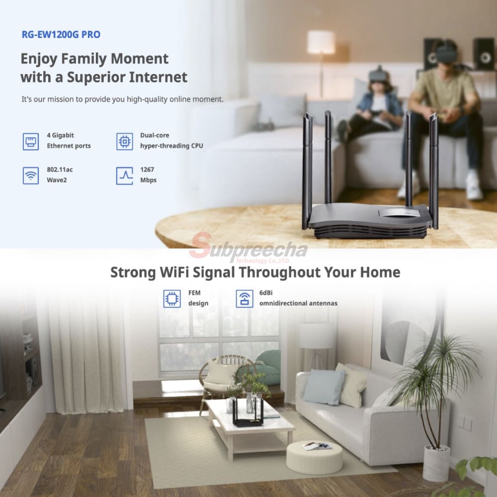 ◈ Ruijie Reyee RG-EW1200G PRO เราเตอร์ Wi-Fi 5 มาตรฐาน AC1300 (802.11ac Wave2)
