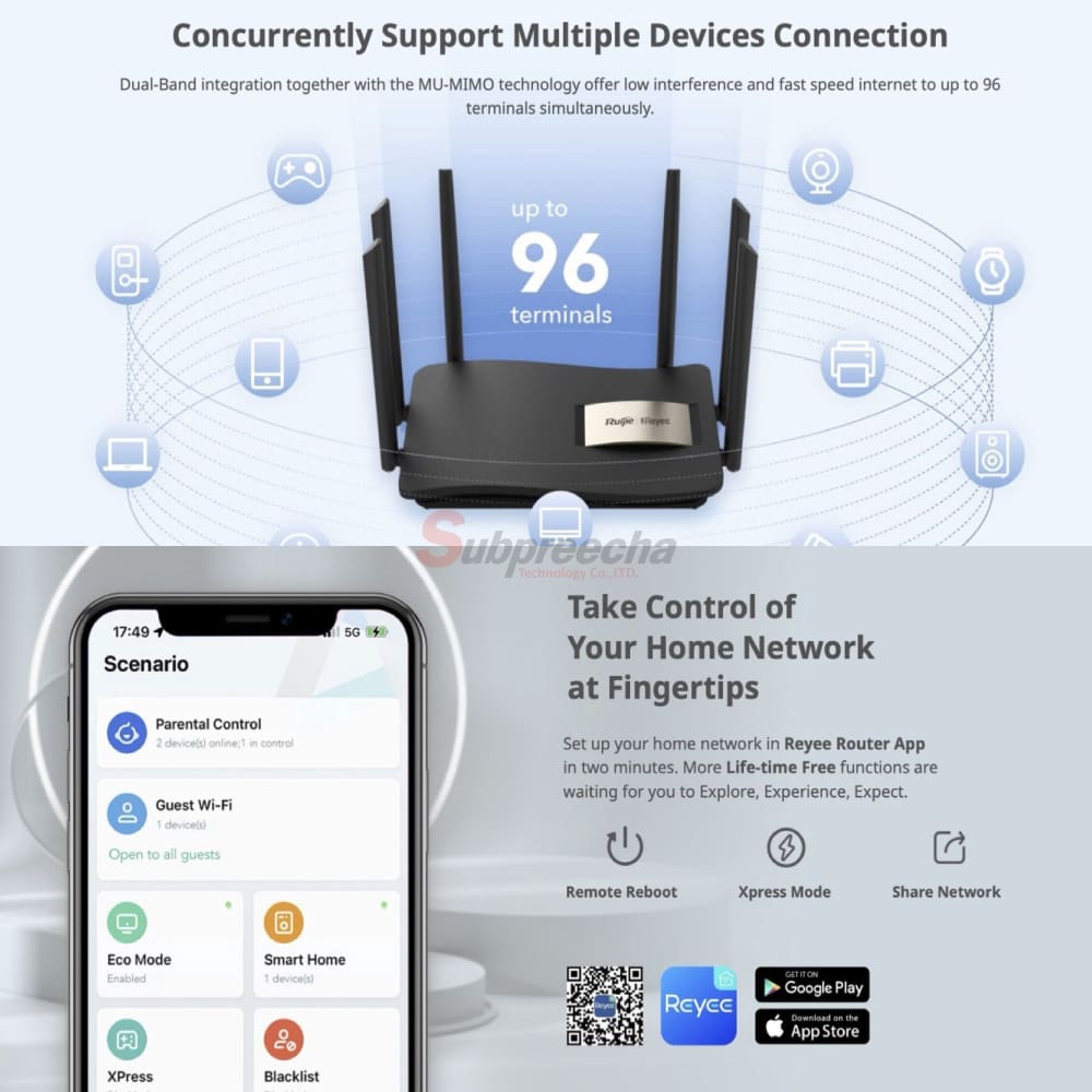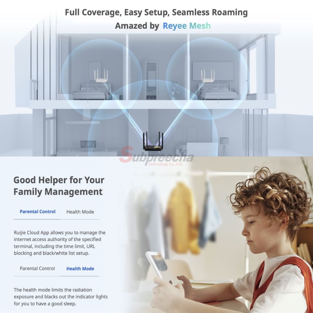 ◈ รองรับ Reyee Mesh ขยายสัญญาณ Wi-Fi ได้ทั่วถึง ไร้รอยต่อ