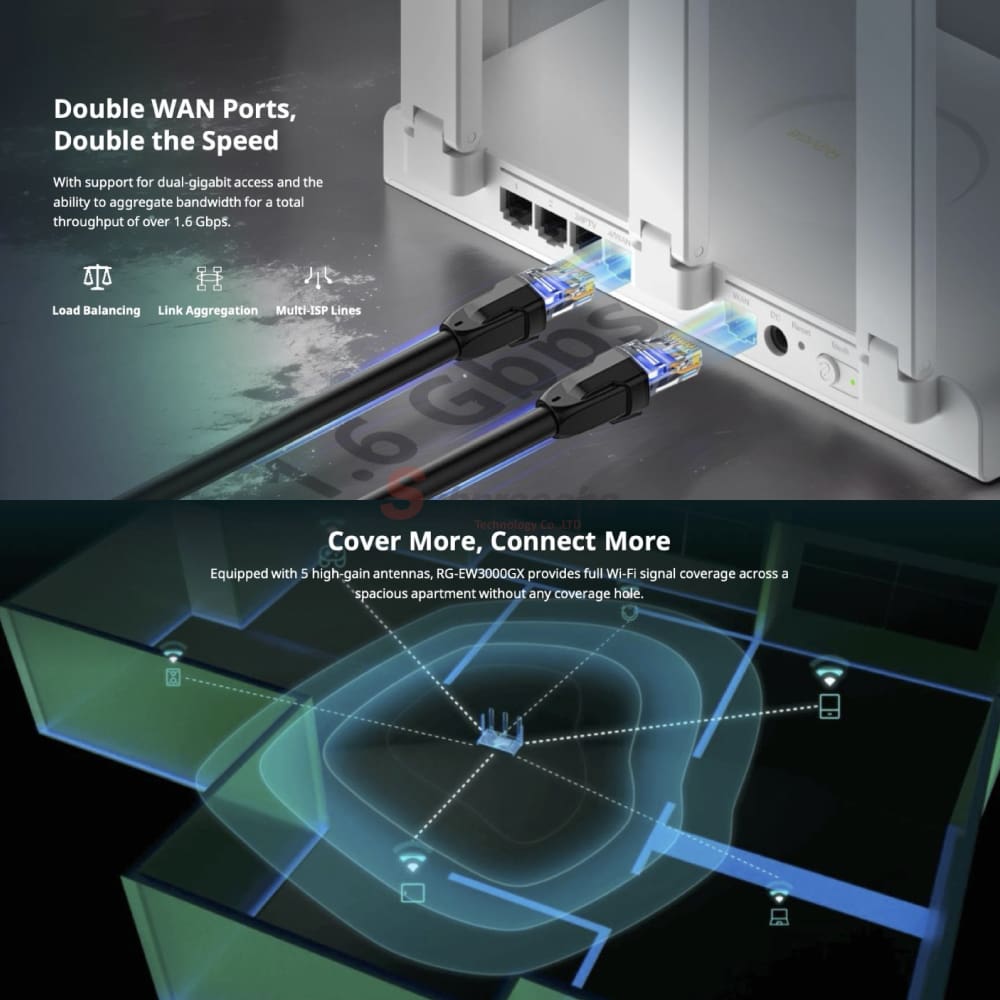 RG-EW3000GX / Ruijie-Reyee เราเตอร์ (Wi-Fi) AX3000 Wi-Fi 6 Dual-WAN Gigabit Router