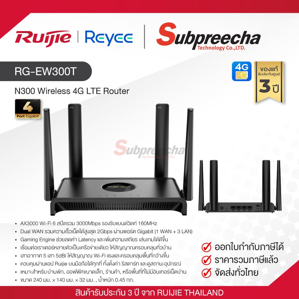 RG-EW300T / Ruijie-Reyee เราเตอร์ (4G ใส่ซิม) N300 Wireless 4G LTE Router
