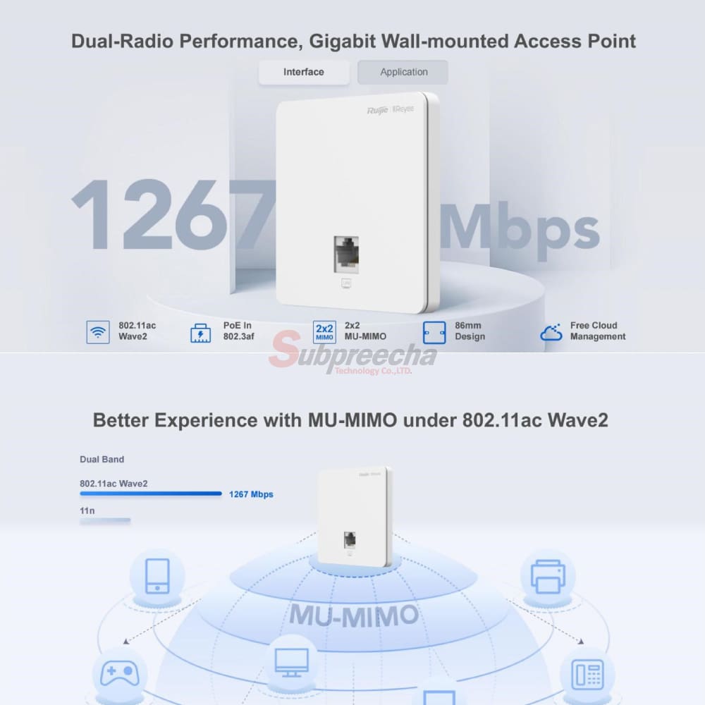 RG-RAP1200(F) / Ruijie-Reyee Wi-Fi 5 1267Mbps Wall-mounted Access Point