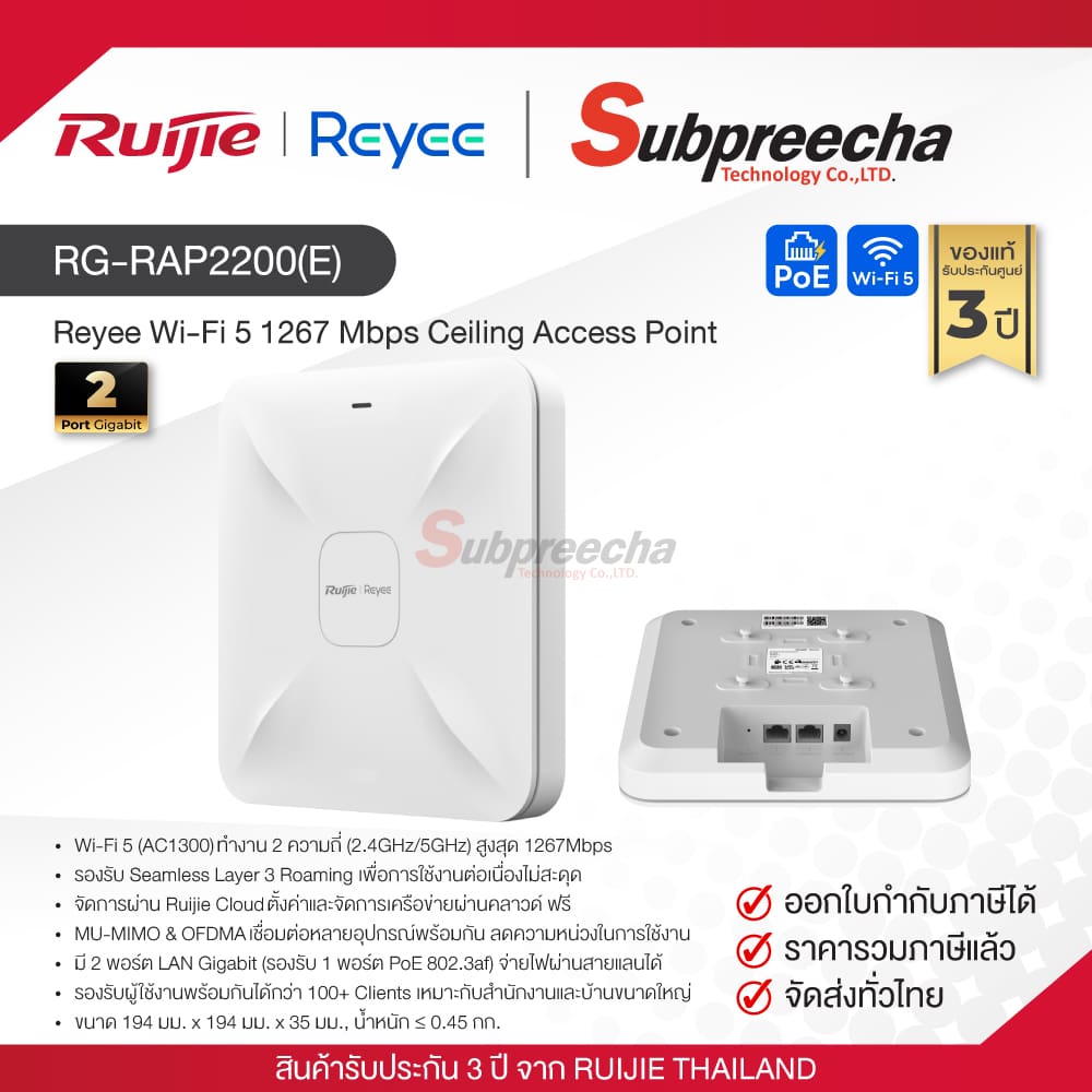 RG-RAP2200(E) / Ruijie-Reyee Wi-Fi 5 AC1300 Indoor Cloud Managed Access Point
