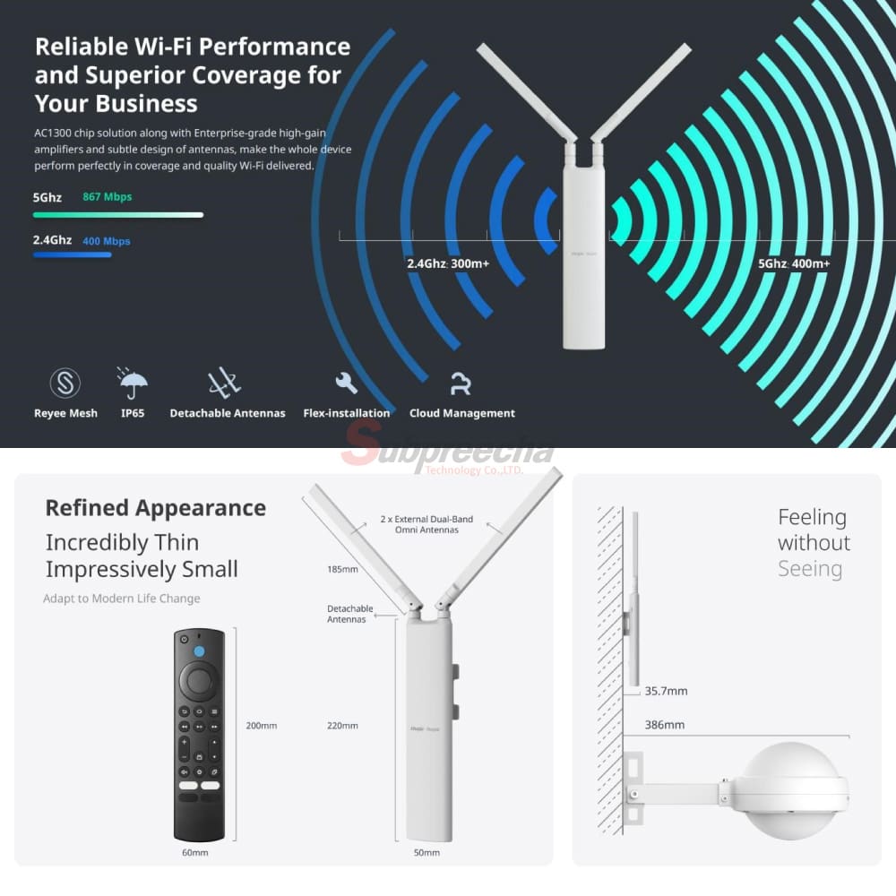 RG-RAP52-OD / Ruijie-Reyee Wi-Fi 5 AC1300 Dual-Band Outdoor Access Point