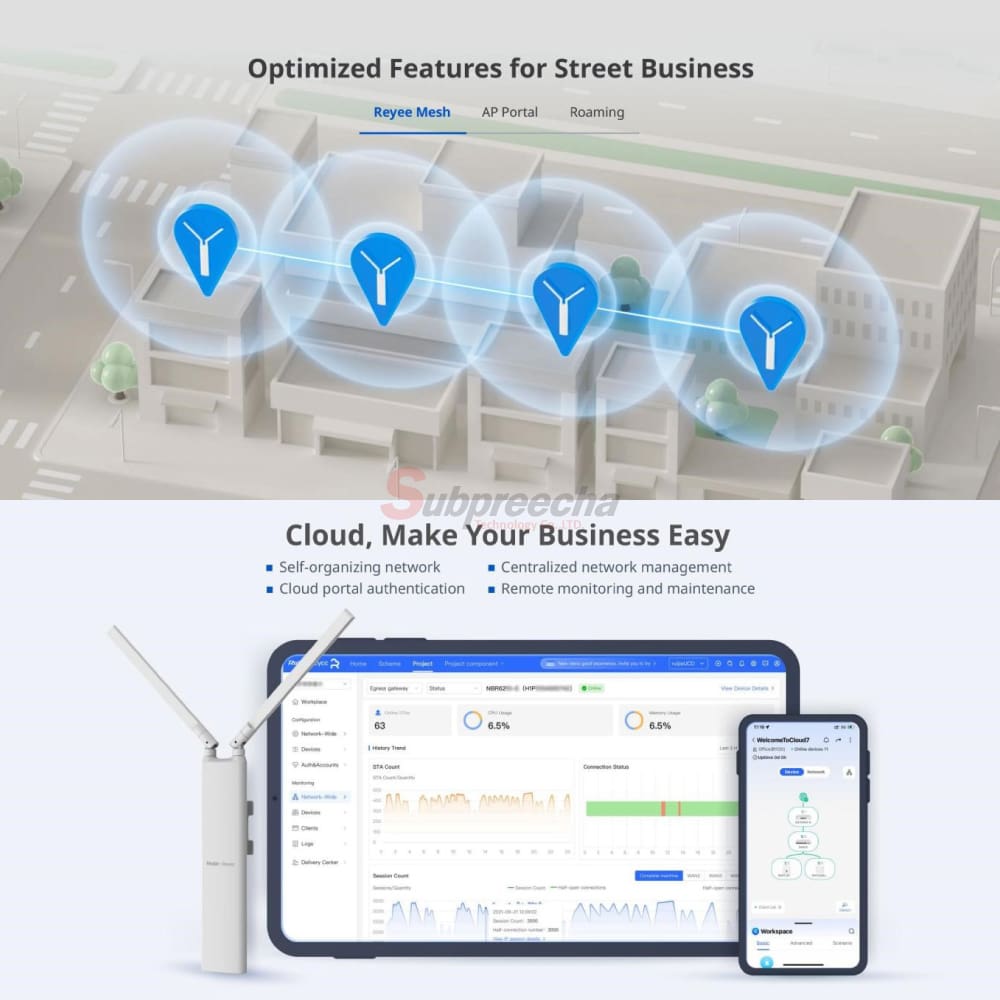 – Tailored for Retail Businesses with Reyee Mesh, Standalone Portal, and AI Roaming Features