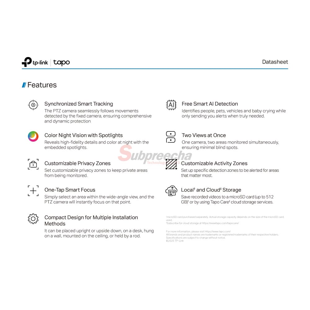 – Secure Local or Cloud Storage – บันทึกภาพวิดีโออย่างต่อเนื่องบนการ์ด microSD สูงสุด 512GB (ไม่รวม) หรือสมัครใช้งาน Tapo Care สำหรับการเก็บข้อมูลบนคลาวด์ซึ่งจะบันทึกวิดีโอได้ 30 วัน