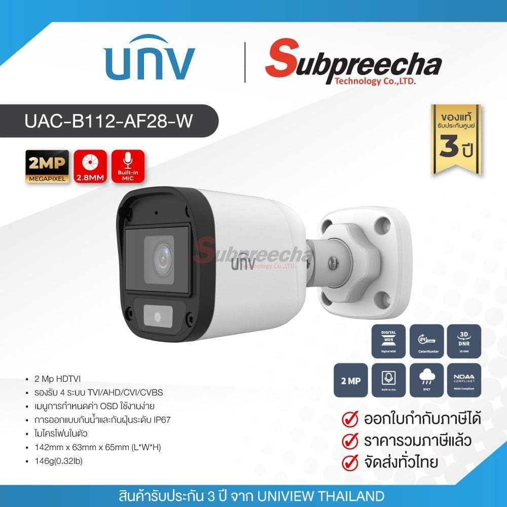 UAC-B112-AF28-W / Uniview กล้องวงจรปิด 2 MP (Lens2.8mm)