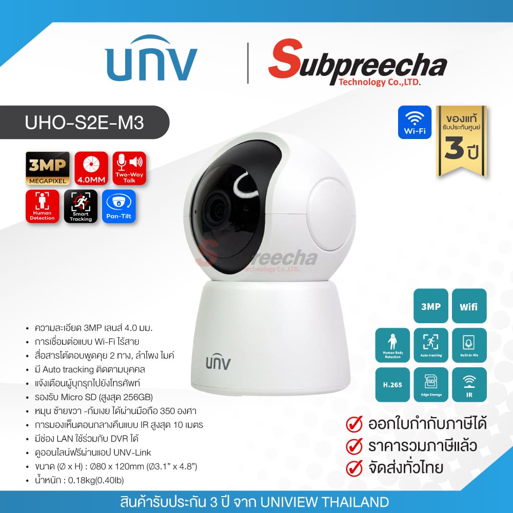Uho-S2E-U3 / Uniview กล้องวงจรปิด 3MP (Lens4.0mm) (Wi-Fi) Pan & Tilt Smart PT Camera