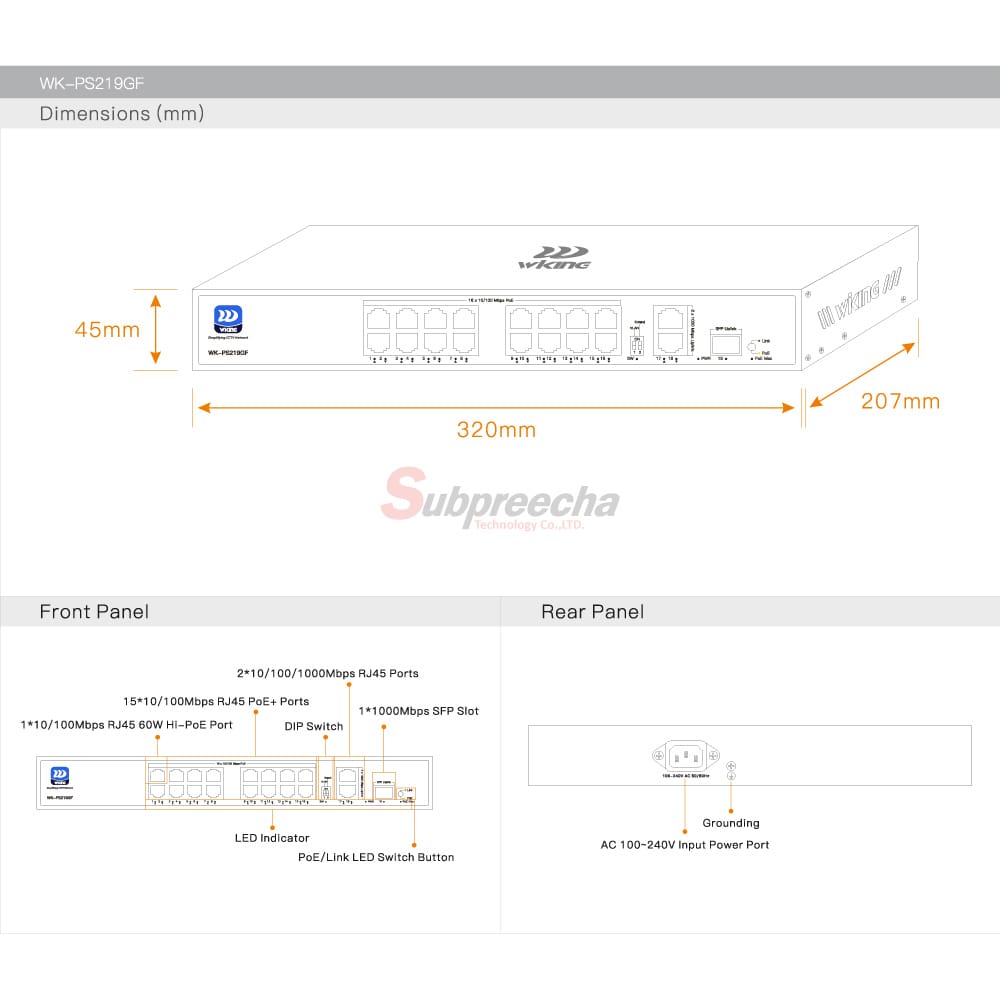 - พอร์ต 16x 10/100Mbps PoE (พอร์ต 1 Hi-PoE 60W, พอร์ต 2-16 802.3af/at 30W)