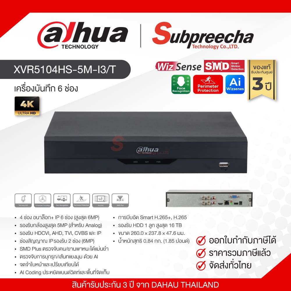 XVR5104HS-5M-I3/T / Dahua เครื่องบันทึก XVR 4ch (1SATA) WizSense